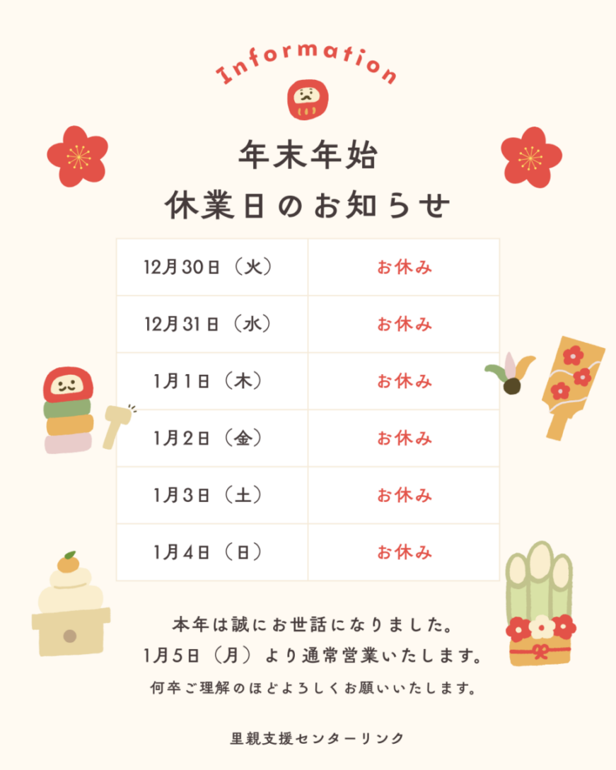 年末年始のお知らせ